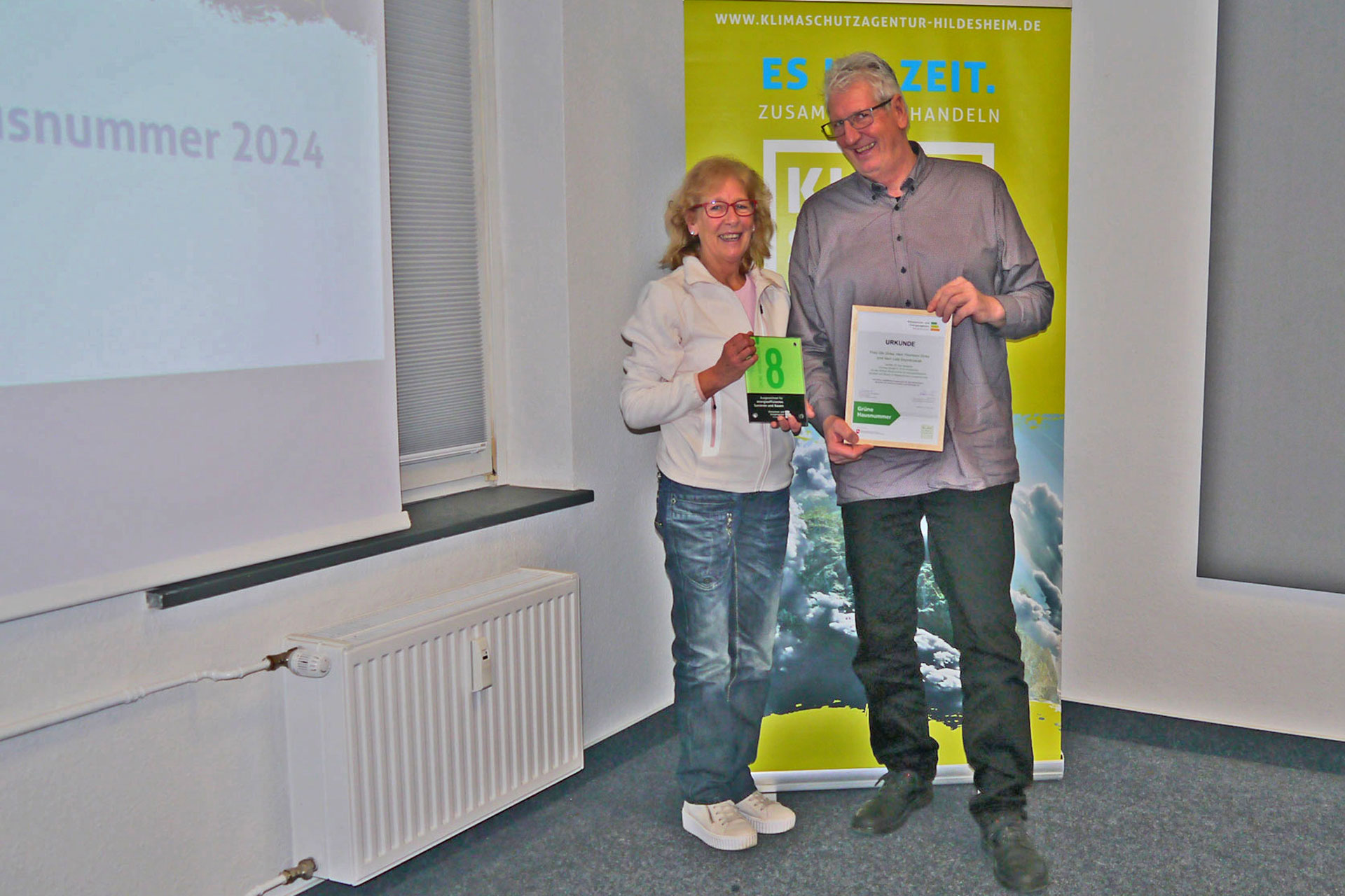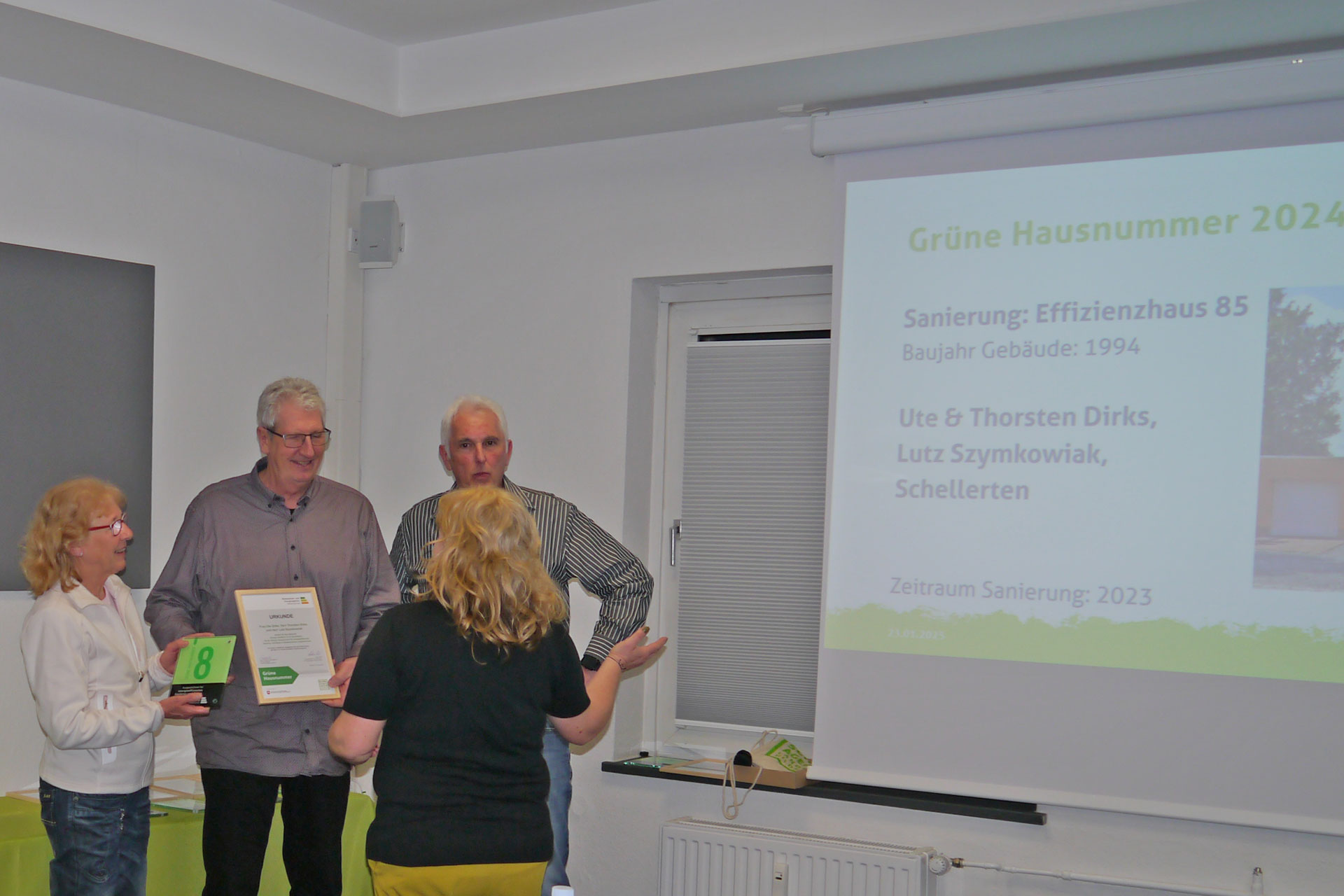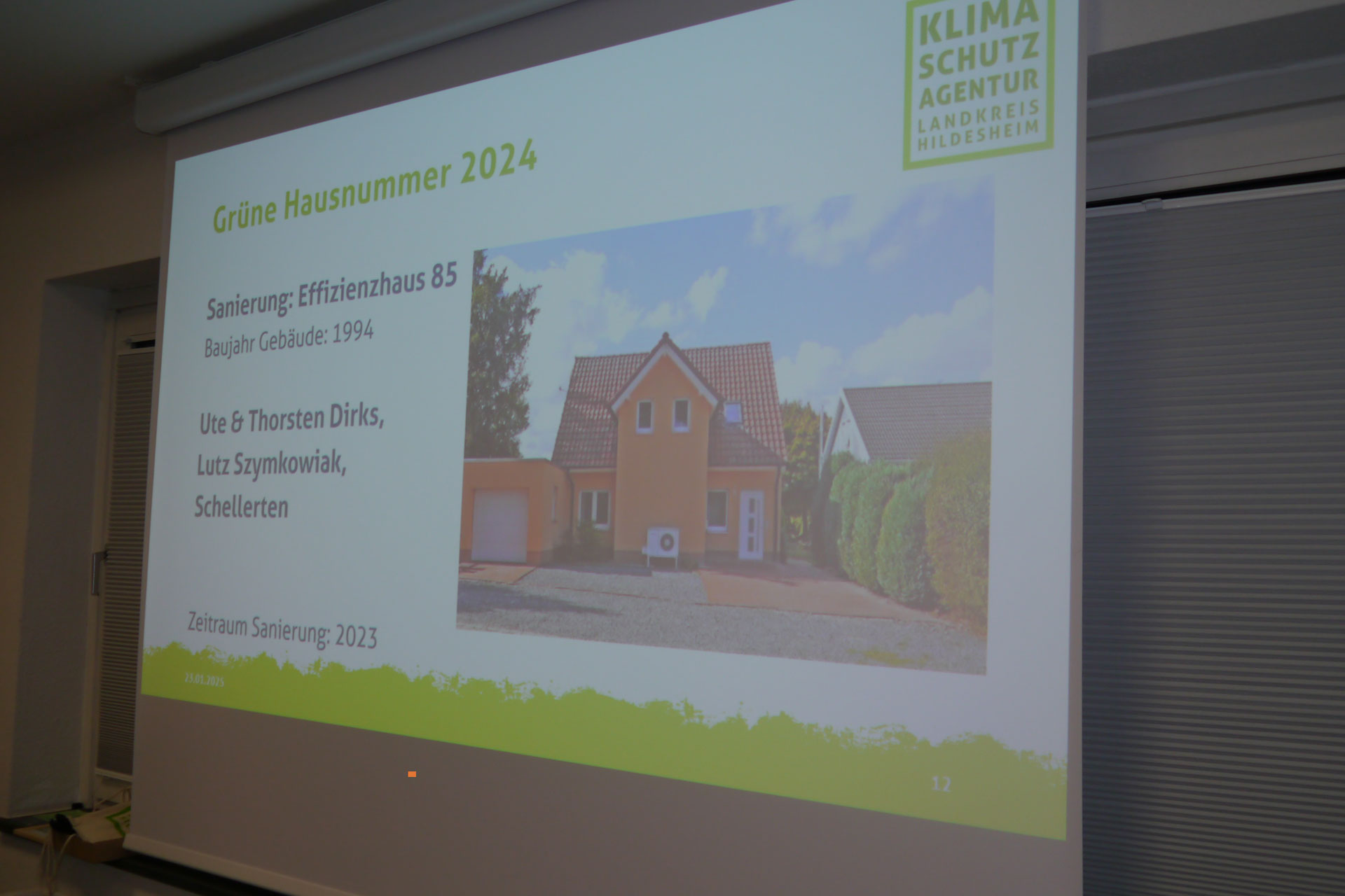 Dieses Haus wurde von der Klimaschutz- und Energieagentur mit einer grünen Hausnummer und einem Preis ausgezeichnet.